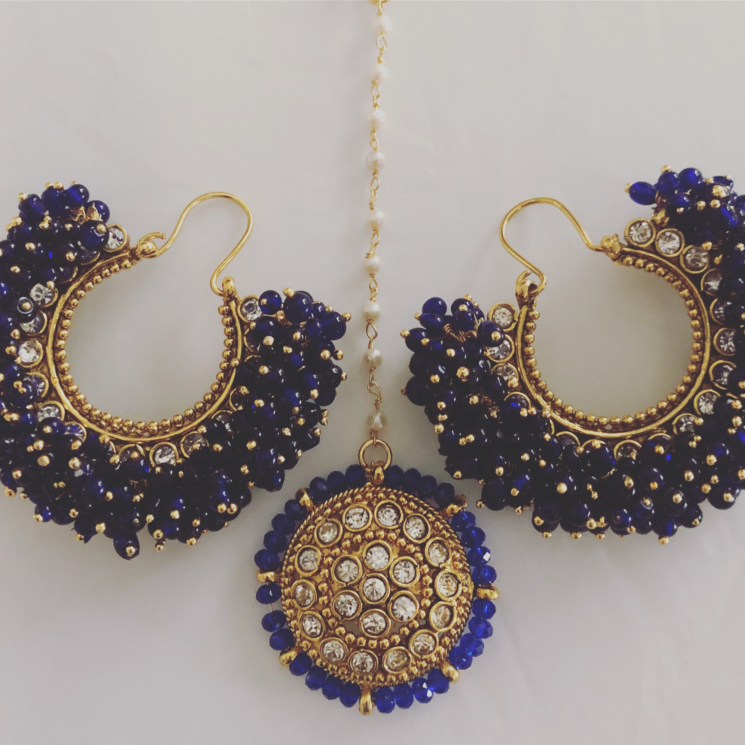 Divya earrings and tikka set (Royal blue)