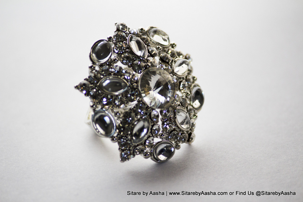Silver tone Over-sized Ring with Rhinestones